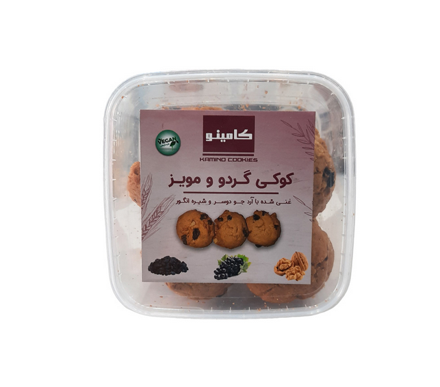 با کوکی گردو و مویز وگان کامینو، لذت شیرینی سالم و طبیعی را تجربه کنید! این کوکی خوشمزه با ترکیبی از گردوی مغذی و مویز شیرین، بدون هیچ گونه مواد حیوانی تهیه شده است. ایدهآل برای افرادی که به دنبال گزینههای سالم و گیاهی هستند.