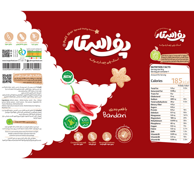 اسنک پفی چهارجوانه آتشین پف استار 50 گرم