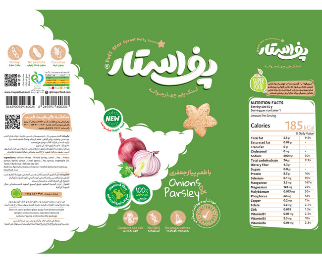 اسنک پفی چهارجوانه پیاز جعفری پف استار 50 گرم