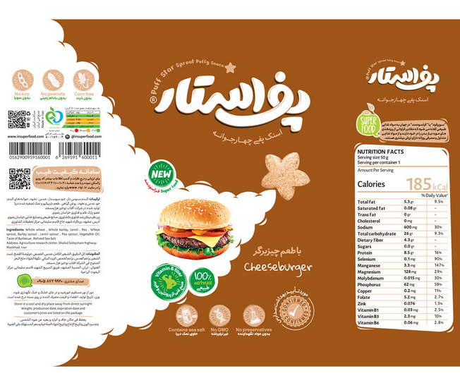 اسنک پفی چهارجوانه چیز برگر پف استار 50 گرم